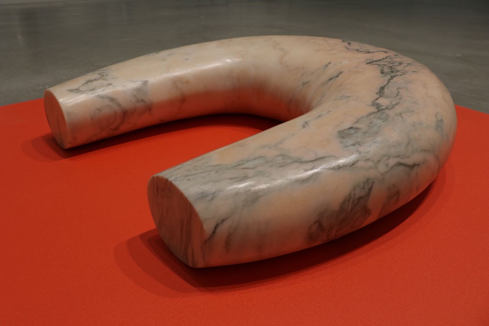 Portuguese Rose (marble), vinyl floor, rubberband, steel